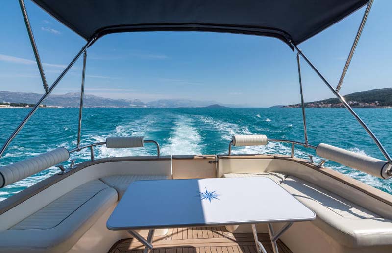 Damor 980 Fjera is a luxury, comfortable and very reliable motor boat, ideal for family cruising. Classic outside line complements the luxurious interior of cherry and teak deck. The interior is well equipped so you won't need a luxury apartment. Two cabins with double beds will satisfy even the most demanding. The central part of the boat, steering with a lounge, is equipped with a kitchen on one side and U-shaped sofa which can be easily transformed into an extra bed. The cockpit is functional and rational with plenty of seating and storage, and enough space to move freely. Sunbathing on sundeck or enjoying the deep shade of the deck are the toughest decisions after you board this beauty. Book this unique ship and enjoy the beauty of the Adriatic Sea!